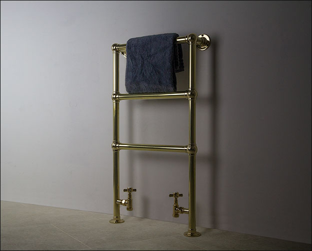 Un radiateur sèche-serviettes de qualité supérieure, de fabrication britannique traditionnelle, disponible uniquement pour les systèmes de chauffage central, bi-carburant et électriques. Fabriqué en acier inoxydable massif avec finition PVD en laiton. Les versions électriques uniquement et bi-carburant ont un élément électrique subtilement caché.