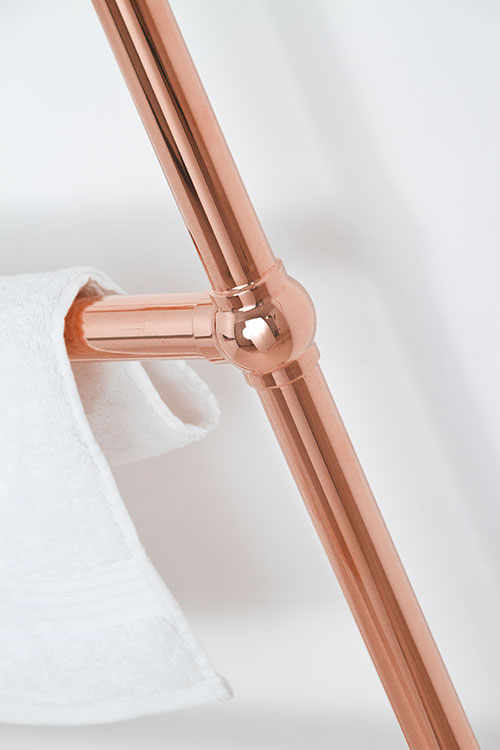 Ce porte-serviettes de salle de bain plaqué cuivre présente un style traditionnel avec des connexions à rotule. Fabriqué en Grande-Bretagne selon les normes de qualité les plus élevées, le chauffe-serviettes Eden Copper offre une touche unique à un design classique, ce qui en fait un excellent ajout aux salles de bains traditionnelles et modernes. Des améliorations du porte-serviettes électrique uniquement et à double combustible sont également disponibles, avec des éléments électriques cachés pour un design soigné. Cuivre plaqué sur commande spéciale.