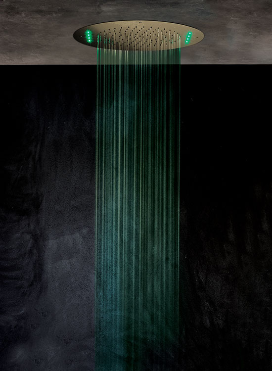 Cette luxueuse pomme de douche montée au plafond est finie en laiton brossé élégant. Personnalisez selon vos besoins avec un choix de pomme de douche de 420 mm ou 550 mm de diamètre ; pulvérisations de pluie et de brouillard nébulisant ; et éclairage de chromothérapie en option. Une pomme de douche de haute qualité issue de notre collection exclusive de douches et d'accessoires en laiton.
