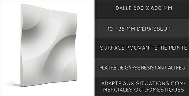 Les panneaux muraux décoratifs Groove 3D ont une surface décorative élégante texture produisant un mur de grand design contemporain. Chaque panneau mural est fabriqué en plâtre et il est disponible en carreaux de 600 x 600 mm qui adhèrent simplement à la surface d'un mur existant en format de carreau. Ces panneaux muraux texturés peuvent être installés en un format de carreau ou avec joints remplis de plâtre et sablés pour produire un magnifique mur décoré en continu.