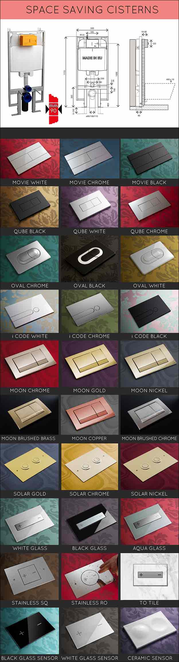 Cette citerne ultraplate dissimulée avec un kit de châssis d'installation est conçue pour le montage facile de toilettes et de toilettes murales. Ces citernes cachées dans la paroi sont à seulement 90 mm dépaisseur, ce qui en fait la plus fine citerne au Royaume-Uni. Ce cadre de toilette mince est tellement mince qu'il peut être facilement installé dans un mur de bois ou devant un mur de maçonnerie solide, ce qui permet léconomies d'espace. Chaque cadre de salle de bains a un ajustement de jambe haut et bas et peut être fourni avec un choix de 27 plaques de chasse de luxe.