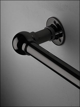 Home / SALLES DE BAINS ACCESSIBLES / Barres de Soutien Pour Douches & Baignoires / Barres d'appui chromées noires / Barre d'appui d'angle chromée noire à rotule (153NBC)